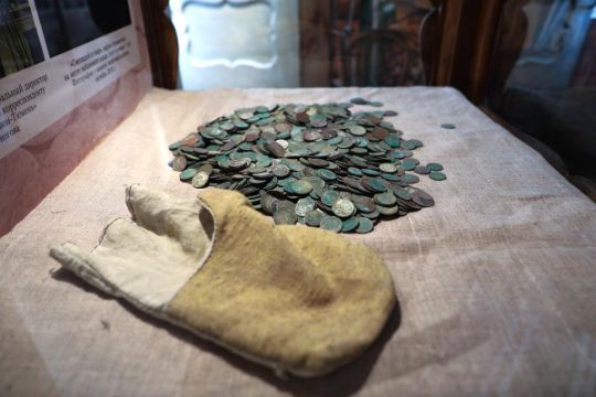 Кроме того, в этом же зале находится мебель из дома Огибениных. В одном из шкафов за стеклом размещены старинные монеты, обнаруженные во время строительных работ. Это настоящий клад, найденный под зданием фабрики.