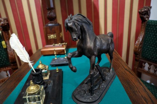 Также в созданном авторами интерьере купеческого кабинета можно увидеть старинный стол и кресла, декорированные фигурами львов.
