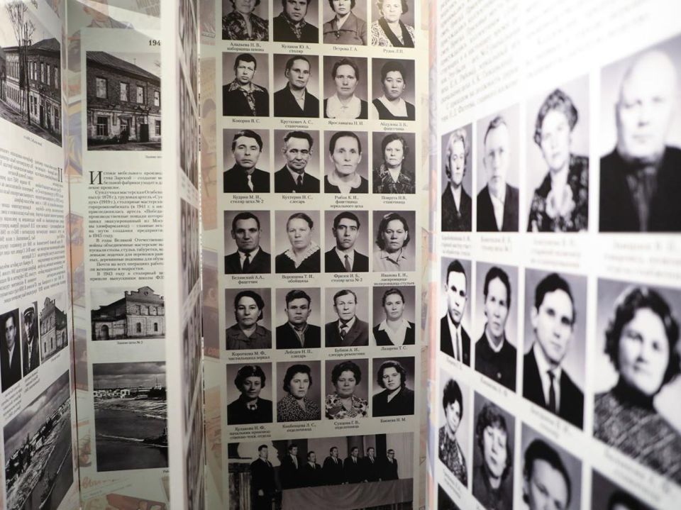 Новейшая история представлена фотографиями не столь далеких лет. Здесь разместили портреты передовиков, рассказали о работе Российской Ассоциации мебельщиков, о современном дне «Заречья».