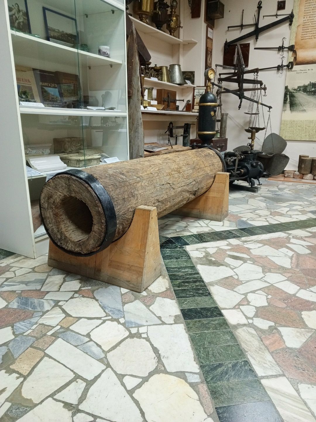 Фрагмент трубы первого водопровода, сделанный из лиственницы в возрасте 210 лет. Трубы скрепляли металлическими обручами и обрабатывали смолой. Найден в 1991 году во время ремонта городской канализации. Хранится в музее Тюменского индустриального университета