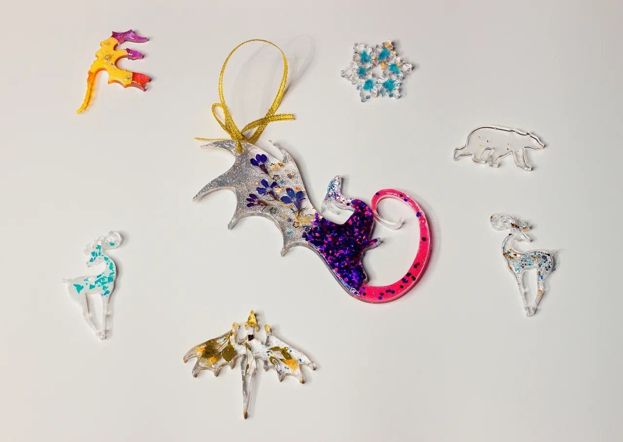 Участники мастер-класса смогут создать свою уникальную новогоднюю игрушку из эпоксидной смолы. Ее разливают по формам (есть драконы, домики, шары и ангелы), а после застывания заготовки ее можно расписать разноцветными красками и украсить декором.