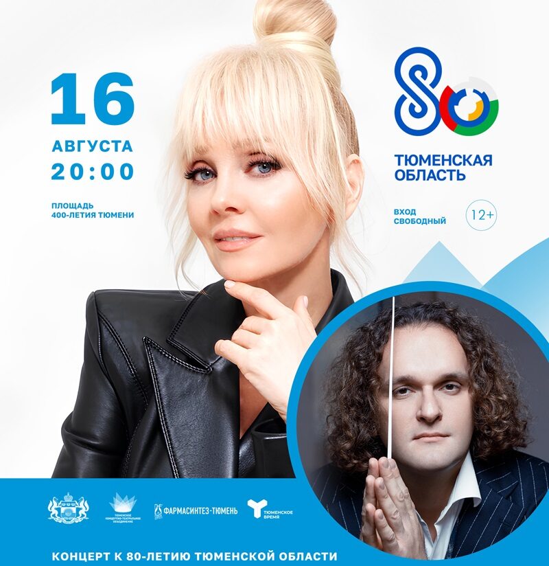 Центральным событием культурной программы празднования юбилея области станет выступление известной певицы Валерии с Тюменским филармоническим оркестром под управлением художественного руководителя и главного дирижера Юрия Медяника.