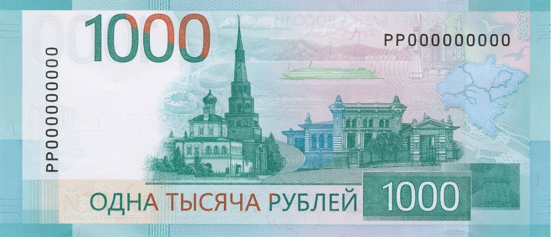 Новая 1000-рублевая банкнота посвящена Нижнему Новгороду и Приволжскому федеральному округу. Основное изображение лицевой стороны — Никольская башня Нижегородского кремля. На оборотной стороне отображены Музей истории государственности татарского народа и Республики Татарстан в Казани, башня Сююмбике на территории Казанского кремля, Музей археологии и этнографии в Уфе.