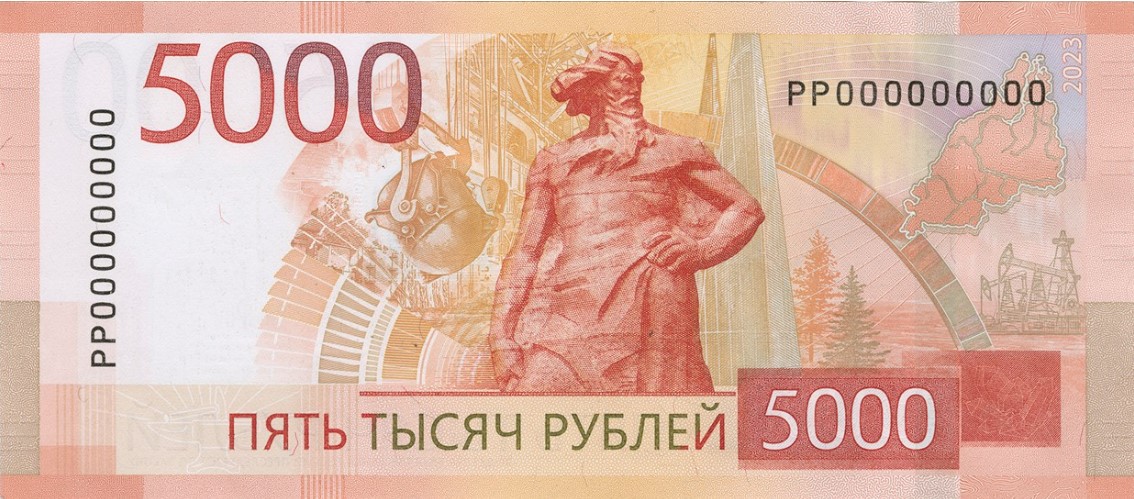 Новая банкнота номиналом 5000 рублей посвящена Екатеринбургу и Уральскому федеральному округу. Основное изображение лицевой стороны — стела «Европа-Азия», на оборотной стороне представлены памятник «Сказ об Урале» в Челябинске, стела «66-параллель» (Полярный круг) в Салехарде.
