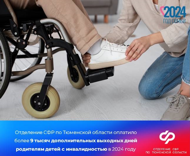В 2024 году Отделение Социального фонда России по Тюменской области оплатило 677 работающим родителям детей с инвалидностью 9426 дополнительных выходных дней.