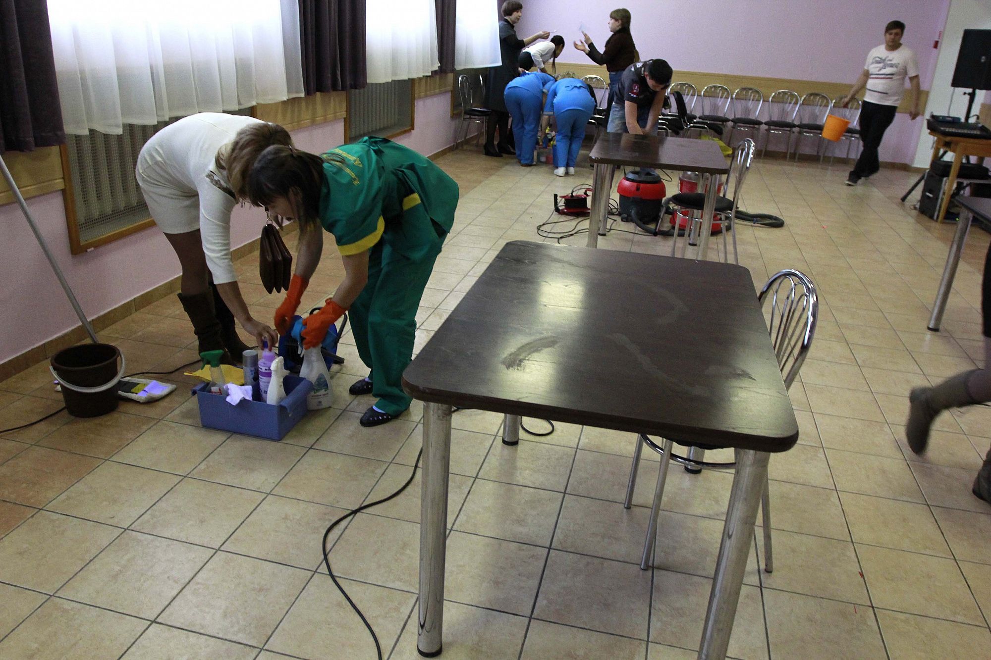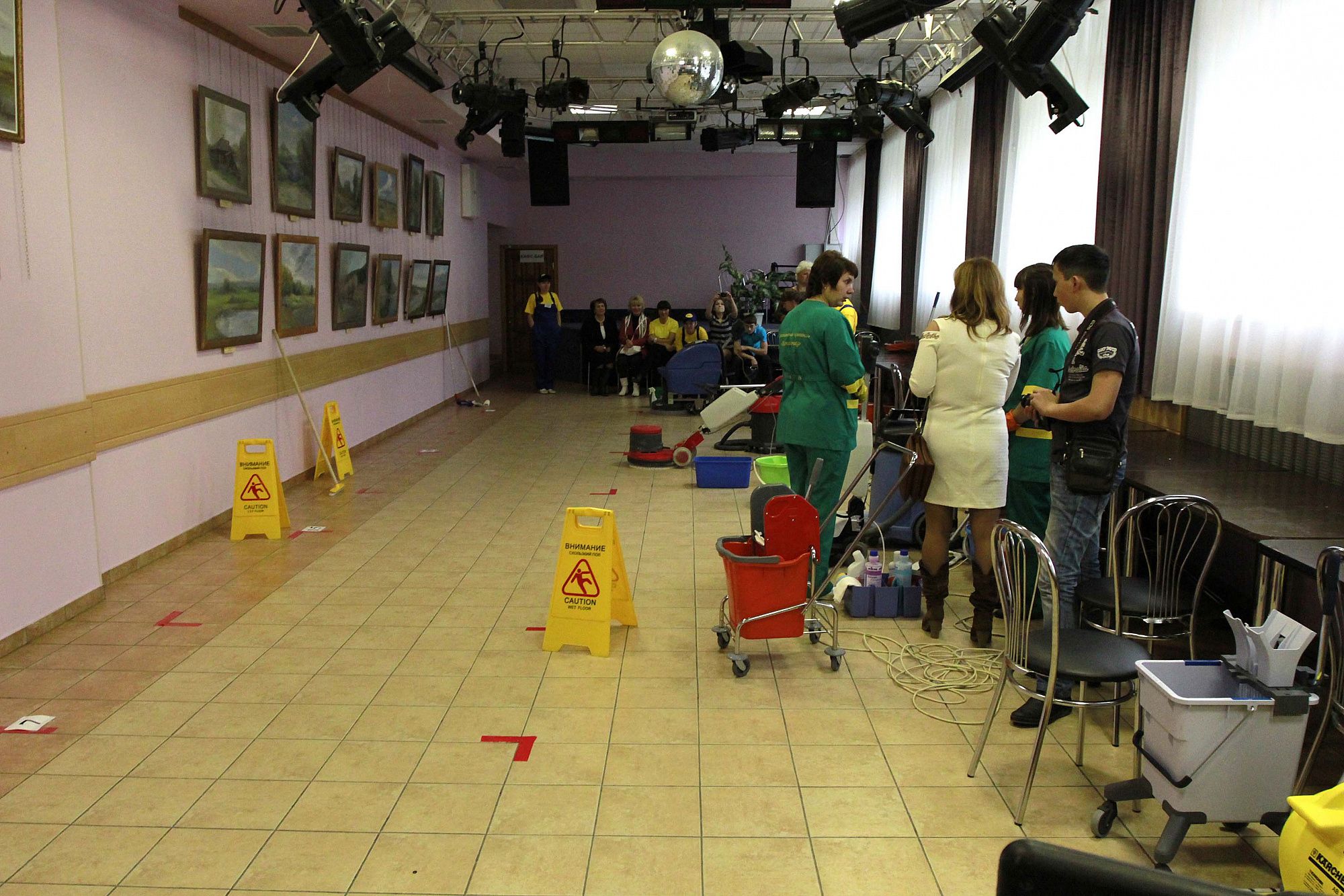 Несколько часов подряд клинеры удаляли все мыслимые и немыслимые загрязнения в ДК "Торфяник".