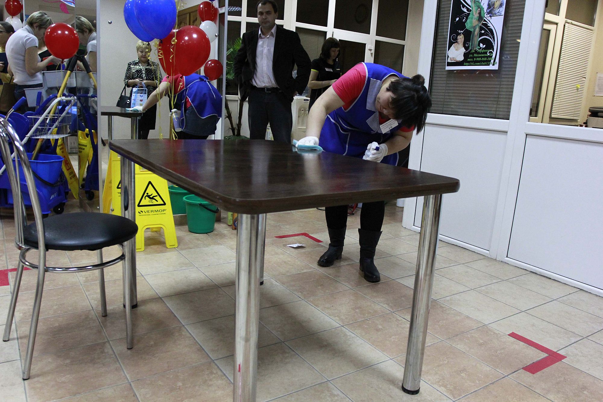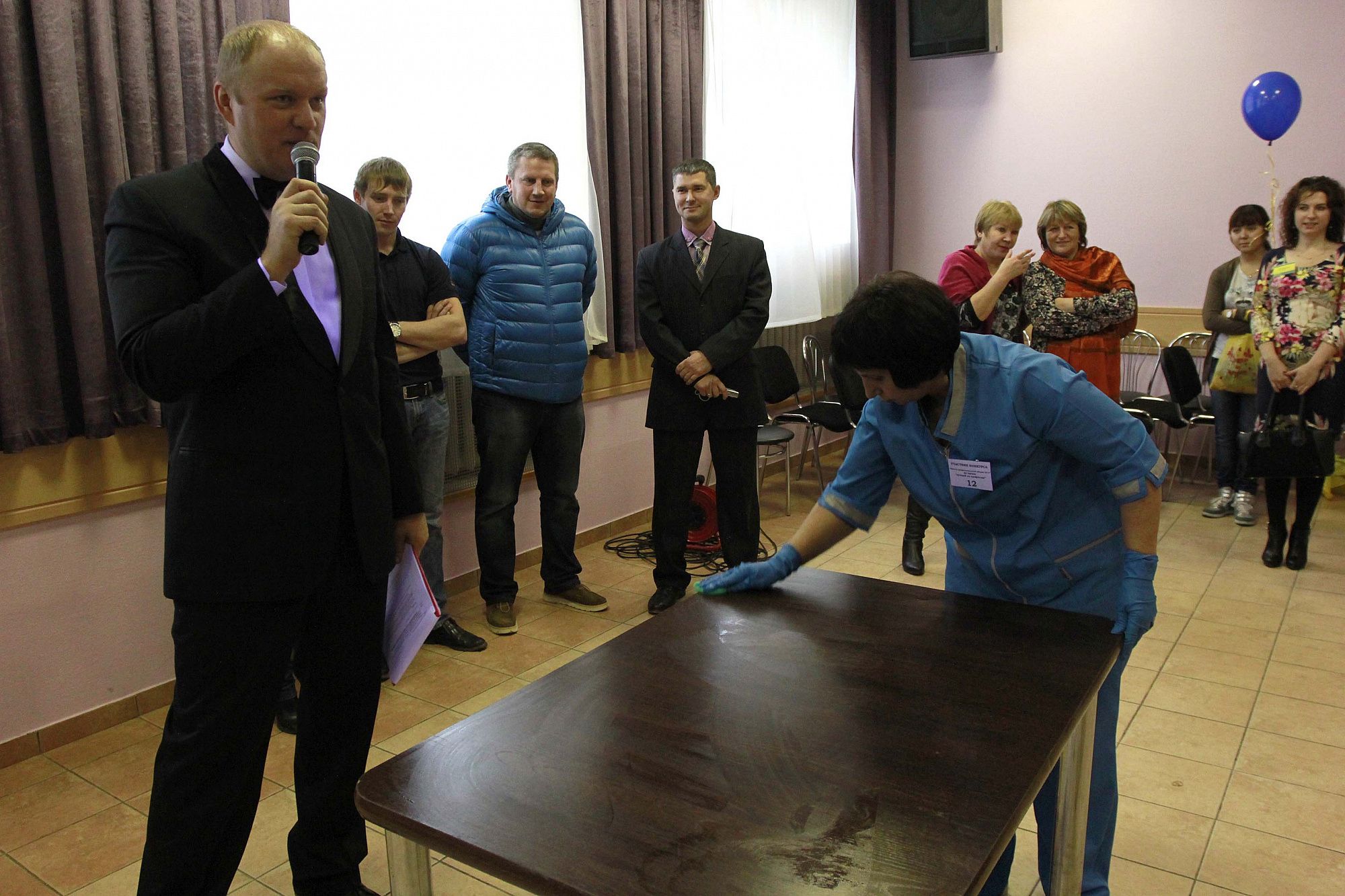 В номинации «Чистка твердого пола» победителем стал представитель компании «Профуборка» Дмитрий Рябков. Лучшей в «Чистке текстильных покрытий» оказалась мастер компании «Светоч» Ирина Ушакова. С «Чисткой горизонтальных и вертикальных поверхностей» качественнее всех справилась Людмила Родионова (компания «Светоч»).