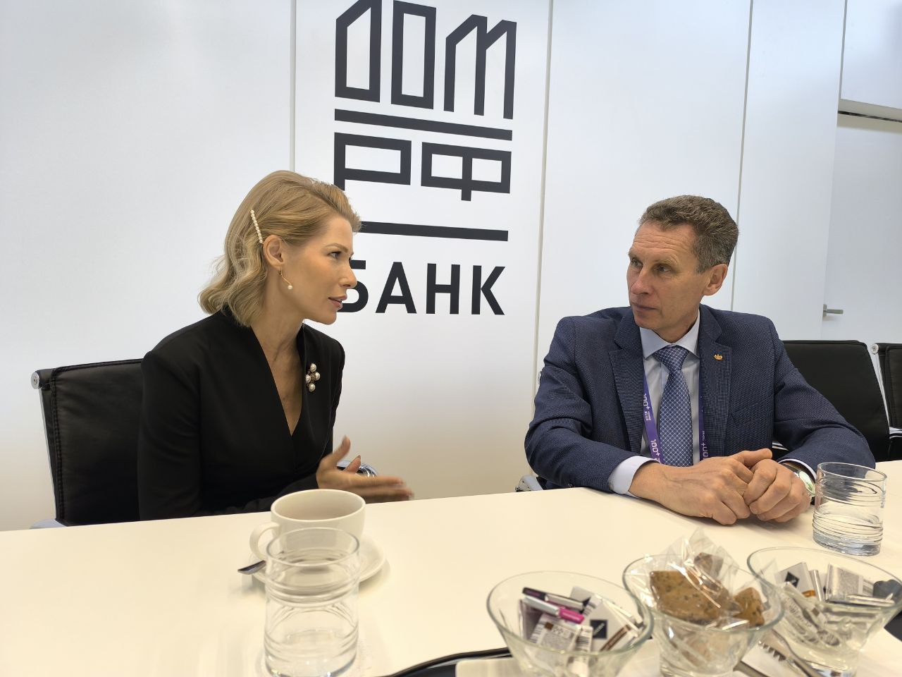 На Международном строительном форуме и выставке 100+ TechnoBuild в Екатеринбурге заместитель губернатора Тюменской области Сергей Шустов, и.о. начальника Главного управления строительства Валерий Киселев встретились с руководителем направления по региональному развитию ДОМ.РФ Аллой Володиной.