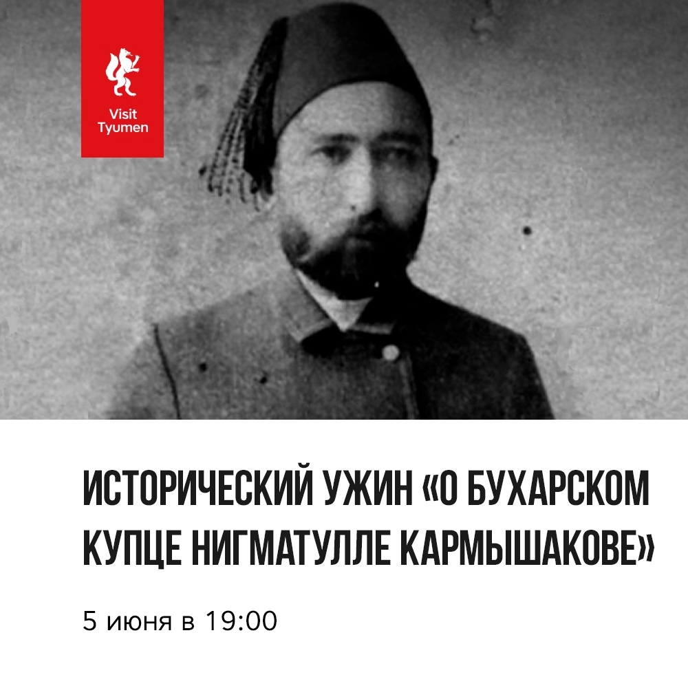 На ужине вы узнаете историю о бухарском купце, чьё имя незаслуженно мало известно тюменцам, погрузитесь в музыкальную и танцевальную культуру татар Сибири — потомков бухарцев — и почувствуете себя в эпохе прошлого. В меню вас ждет бухарско-татарская кухня Сибири: шурпа на трёх видах мяса с горячими кыстыбый и эчпочмаки на курином филе, томлёное шесть часов мясо с печёным картофелем, экзотические фрукты из дальних стран и многое другое. Подробности по телефону:
