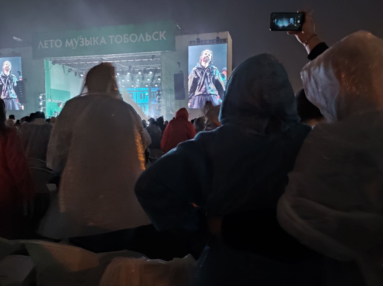 Зрители заходили в зрительный зал под открытым небом уже в дождевиках. Не сильный, но упорный тобольский дождь пытался остудить кипящие страсти все два часа выступления. Но, похоже, ничуть не преуспел.