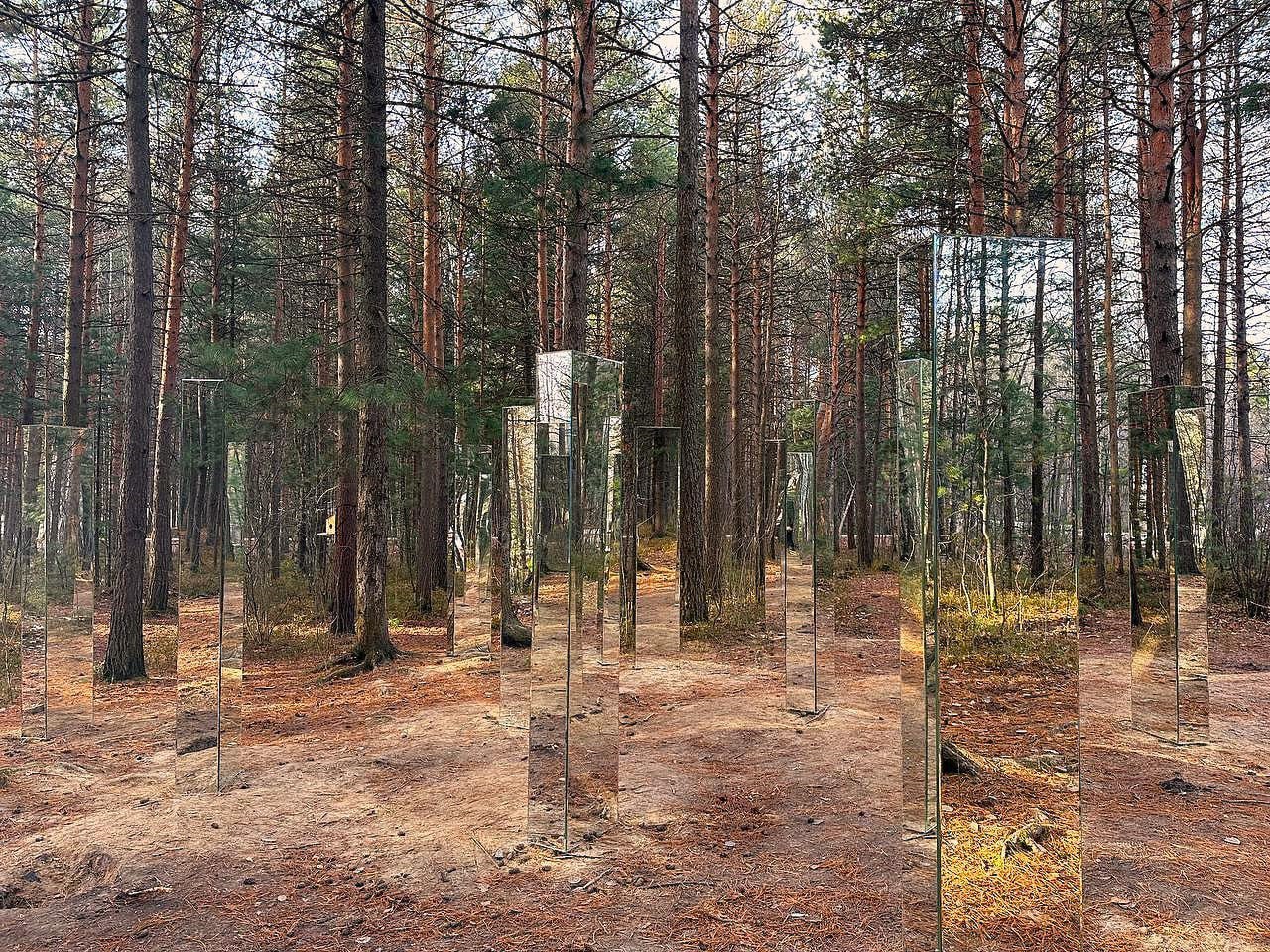«Зеркальный лес» появился в парке «За Саймой» в Сургуте благодаря художникам. Современная инсталляция представляет собой комплекс из шестнадцати зеркальных столбов, интегрированных в природный ландшафт и создающих уникальное художественное пространство.