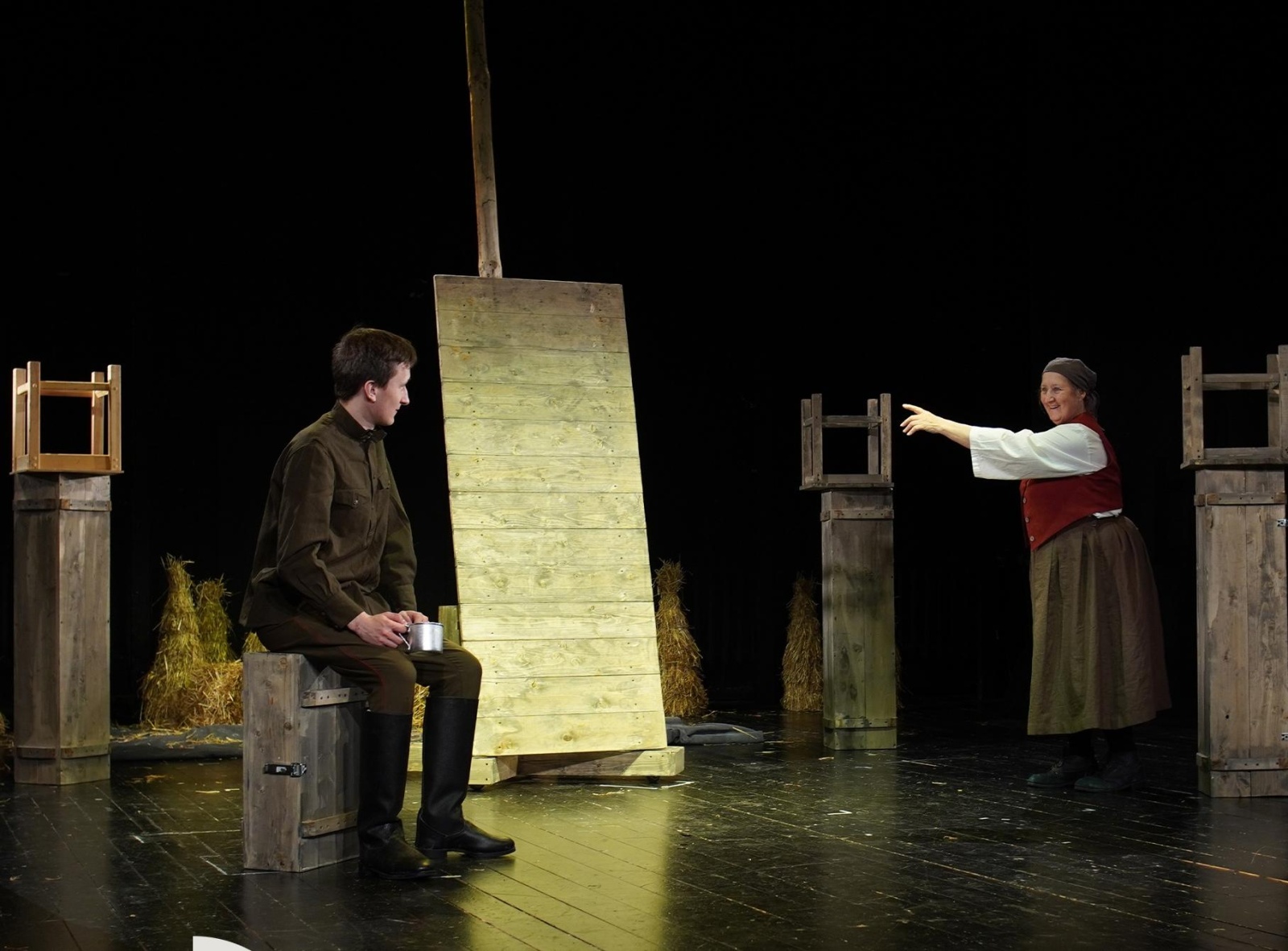 Небольшой одноименный рассказ Владимира Богомолова, легший в основу спектакля, дал труппе театра пространство для блистательных эпизодов. Половина артистов заговорила по-польски. И когда старушка (Людмила Петрушева) начала по-польски требовать у советских солдат drewno, не только Витька готов был сделать все возможное и кое-что невозможное, лишь бы бабуся угомонилась, но и каждый зритель в зале. За «отцом солдат» подполковником Антоновым (Роман Зорин) все бы согласились пойти в атаку и за родину. А денщик Семёнов (Дмитрий Денисов), берущий ведра «не навсегда», немедленно стал своим в доску для всех собравшихся.