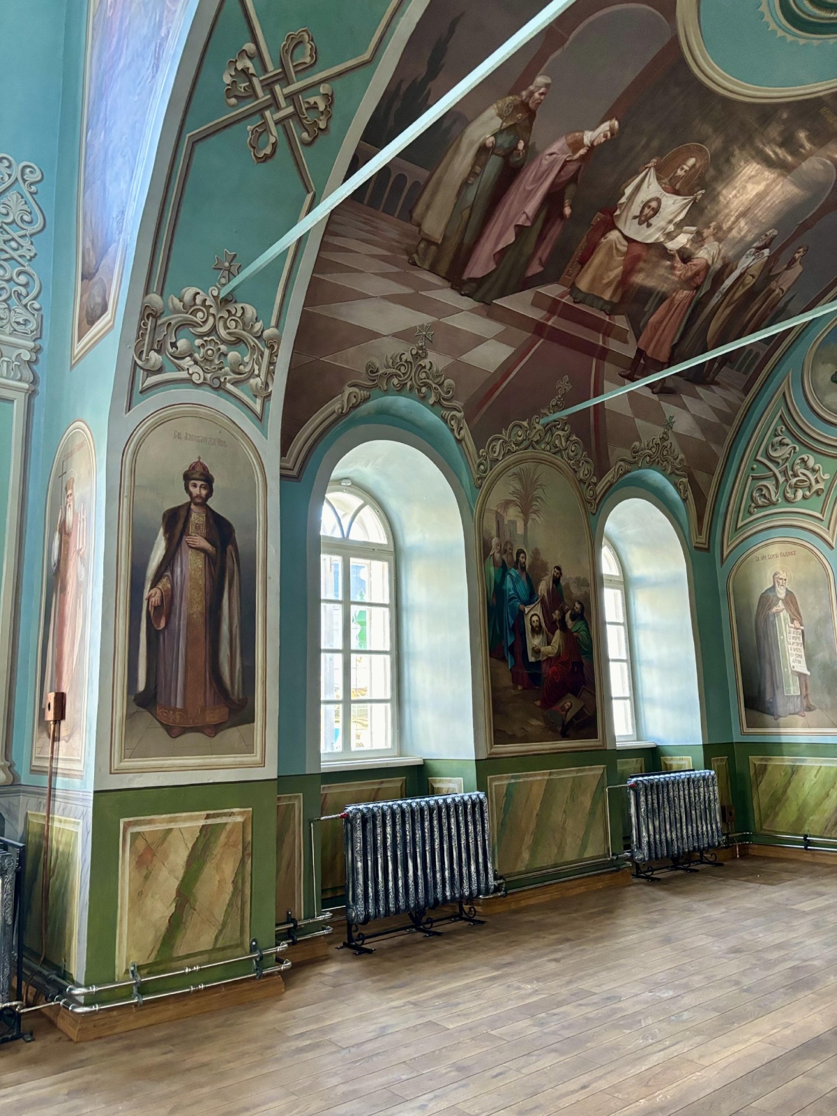 Во время все той же реставрации 2020 года под слоями бумаги художники обнаружили неплохо сохранившуюся роспись на потолках и стенах. Прятал ее явно профессионал — «маскировка» отошла легко, открыв старинную живопись. Ее восстанавливали на протяжении четырех лет и наконец привели внутреннее убранство в порядок.