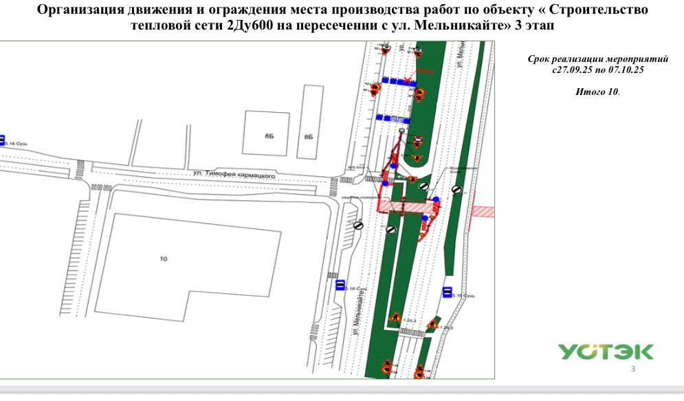 С 7 по 14 октября перекроют две правые полосы ул. Мельникайте по направлению из города.