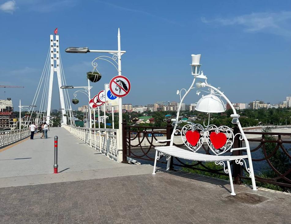 На мосту Влюбленных появилась новая скамья примирения. Она находится на месте прежней — со стороны улицы Республики.