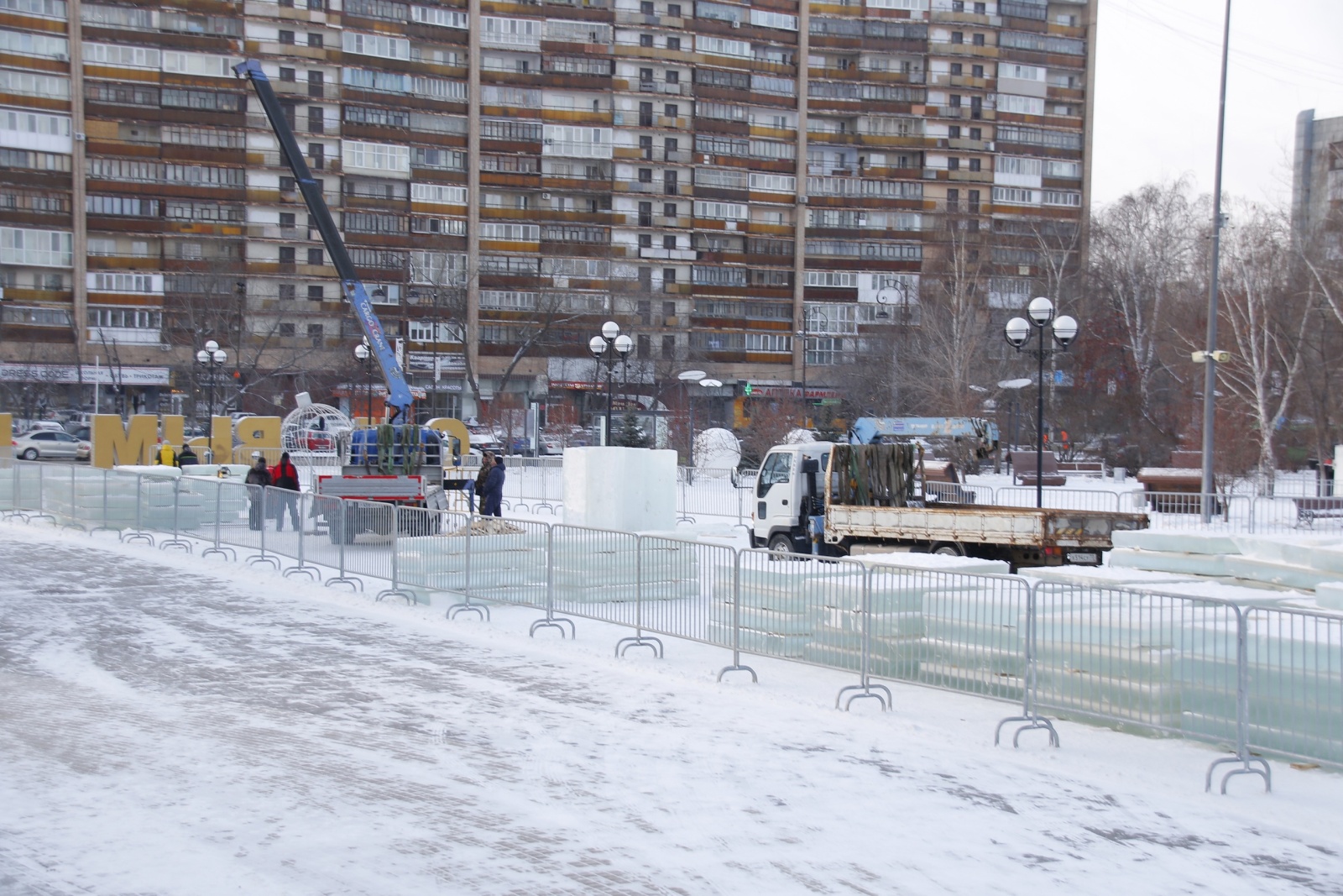 На площади 400-летия Тюмени накануне началось строительство ледового городка.