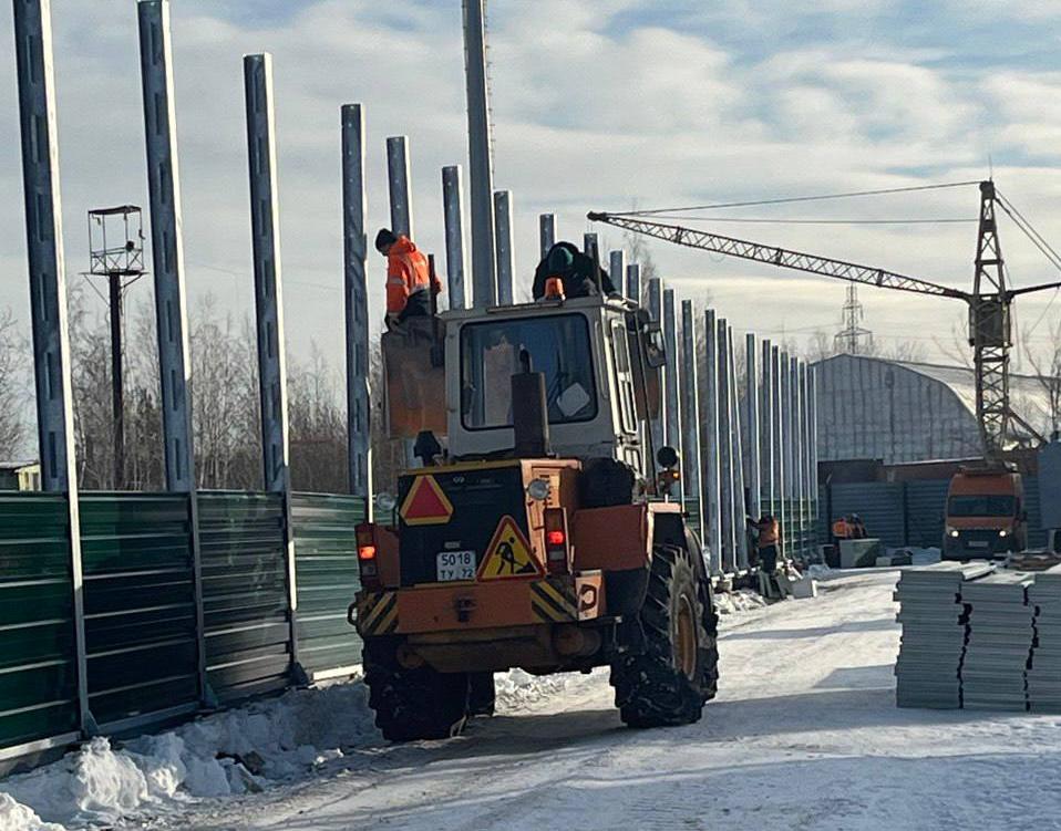 На улице Крайней специалисты МБУ «Тюменьгормост» начали работы по устройству шумозащитного экрана. Ограждение поможет снизить уровень шума от ближнего снежного полигона, расположенного в районе проезда Воронинские горки.