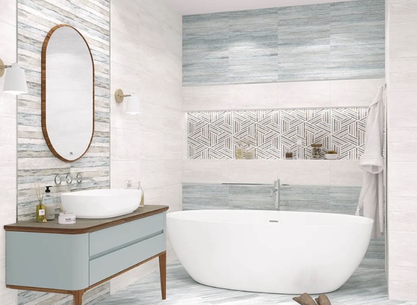 Прежде всего, кардинальные изменения в категории «настенная плитка» затронули форматы облицовки. С мелких, средних и крупных они увеличились до мега крупных. Причем это произошло и в высоту, и ширину. Керамогранит гигантских размеров все чаще стал появляться в коллекциях испанских, итальянских, индийских, китайских и российских производителей. С помощью них процесс укладки в габаритных интерьерах значительно упрощается, а само оформление становится целостным и более привлекательным в плане восприятия. Для этого мега крупная плитка имеет обрезанные края, позволяющие минимизировать видимость швов. Если это, например, имитации камня или мрамора, то монолитность отделки возрастает. Ректифицированный керамогранит, стилизованный под известную с древности заливную кладку «терраццо», также необычайно востребованный. При этом техничность покрытий нисколько не пострадала.