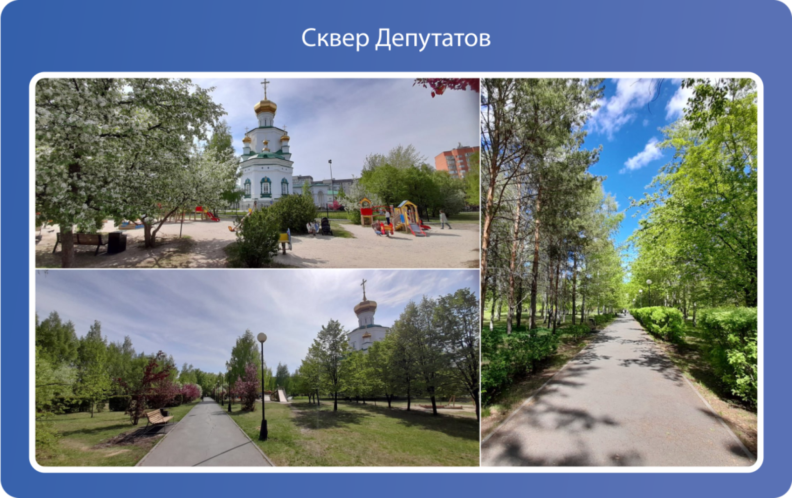 Глава города Тюмени Максим Афанасьев поручил сформировать дизайн-проект будущего благоустройства сквера Депутатов. Большая территория находится в Восточном округе, в створе улиц Широтной и Олимпийской. Здесь построен храм в честь Благовещения Пресвятой Богородицы.