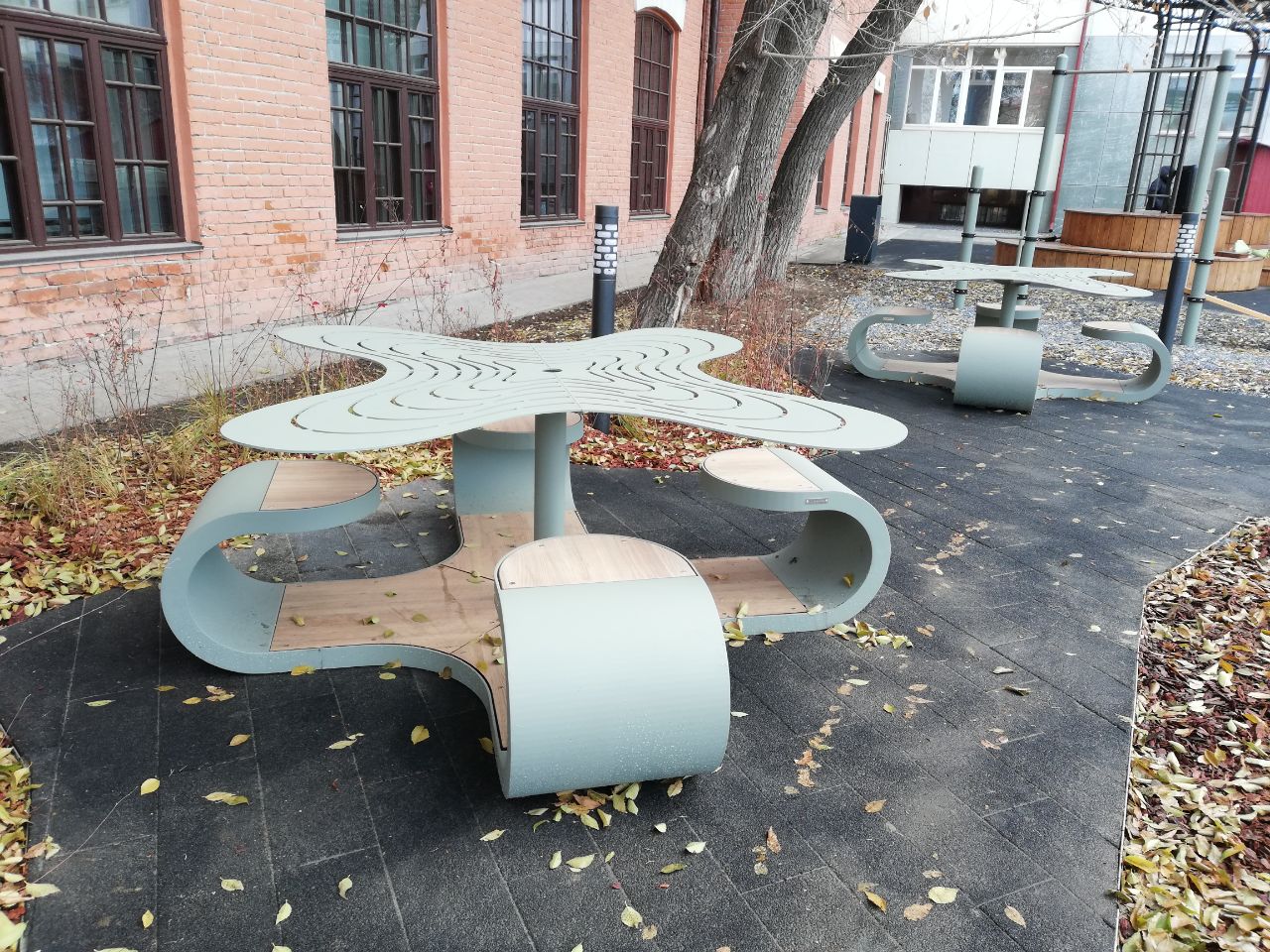 В сквере есть информационная справка о ремесленном училище, в историческом здании сейчас занимаются студенты. На стендах размещена информация о вкладе географов университета в развитие региона, а также об историческом и культурном наследии Тюмени. Здесь установлены спортивная площадка, качели, сцена для мероприятий, можно отдохнуть компанией за столиками, к примеру, сыграть в настольные игры.