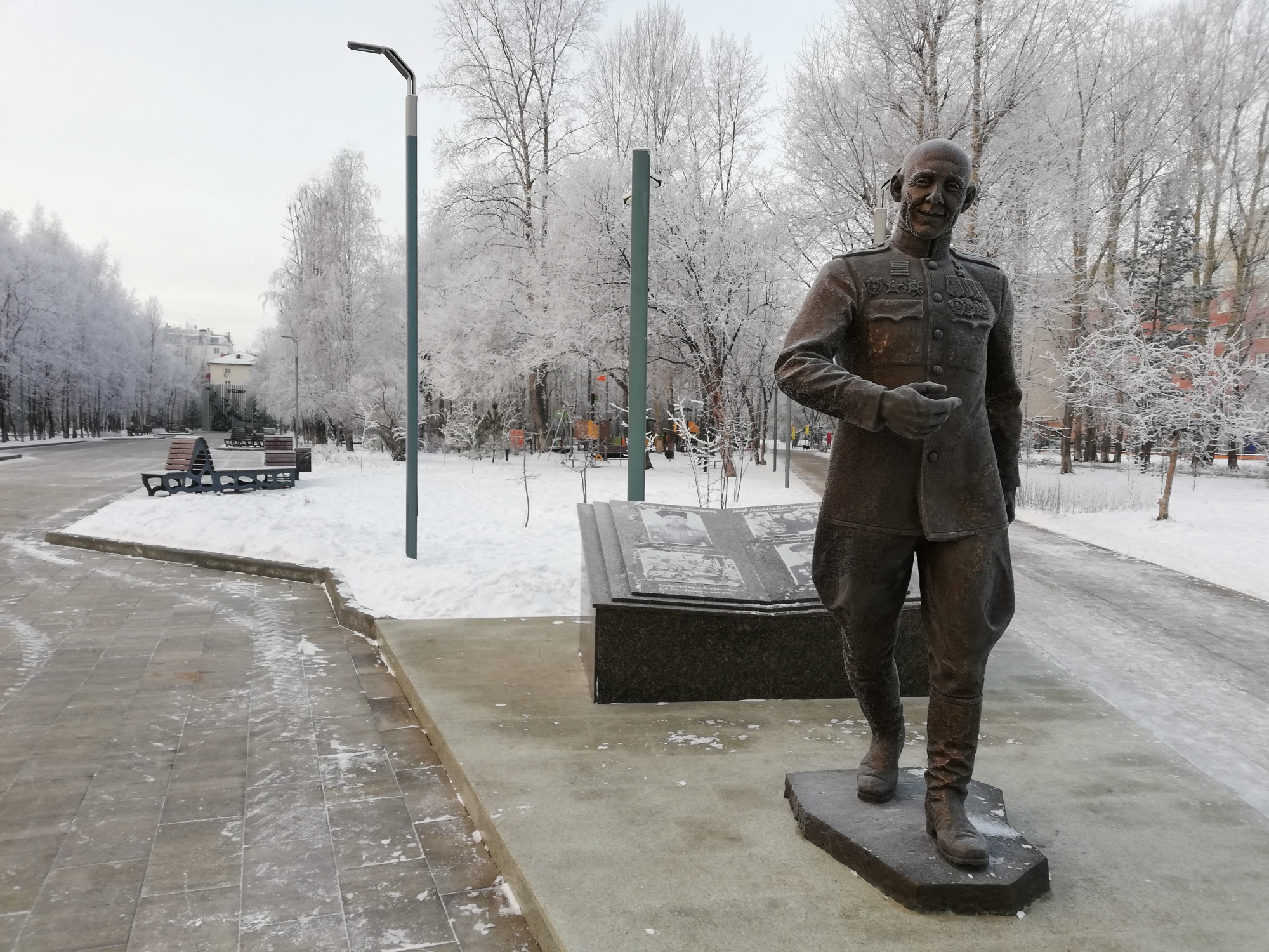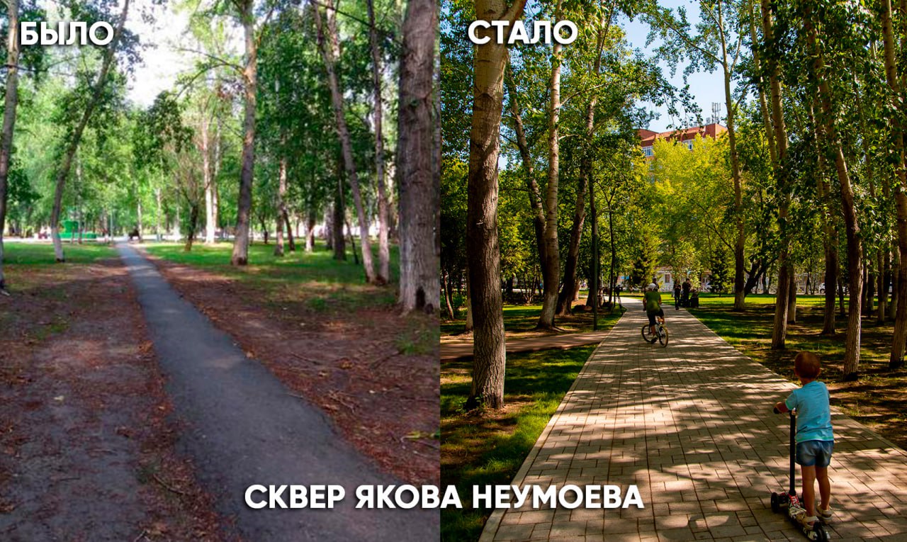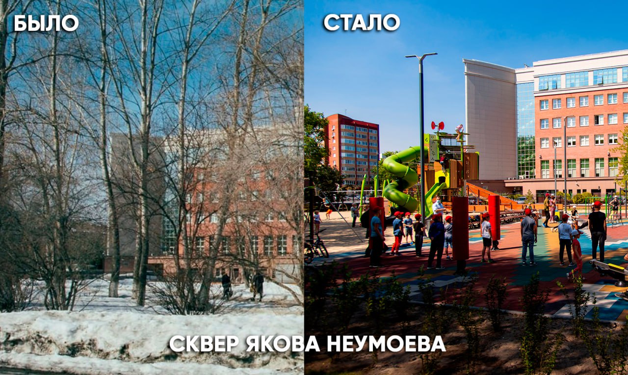 Сквер Якова Неумоева у Выставочного зала в Тюмени стал одним из популярных мест: здесь проводят праздники, экскурсии, уроки и просто отдыхают. Его благоустроили в рамках нацпроекта «Жильё и городская среда», созданного по указу президента РФ Владимира Путина, и открыли в 2020 году. Это один из самых успешных опытов благоустройства в областном центре.