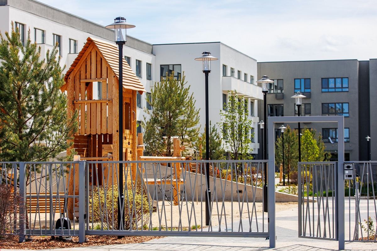 Проект идеален для семей с детьми: рядом детские сады и школы, удобная транспортная развязка. При этом атмосфера уединенная. Современные детские площадки с элементами для развития моторики, силы, ловкости и воображения понравятся детям. А взрослые оценят хвойные деревья и зоны для прогулок с удобными лавочками и шезлонгами.