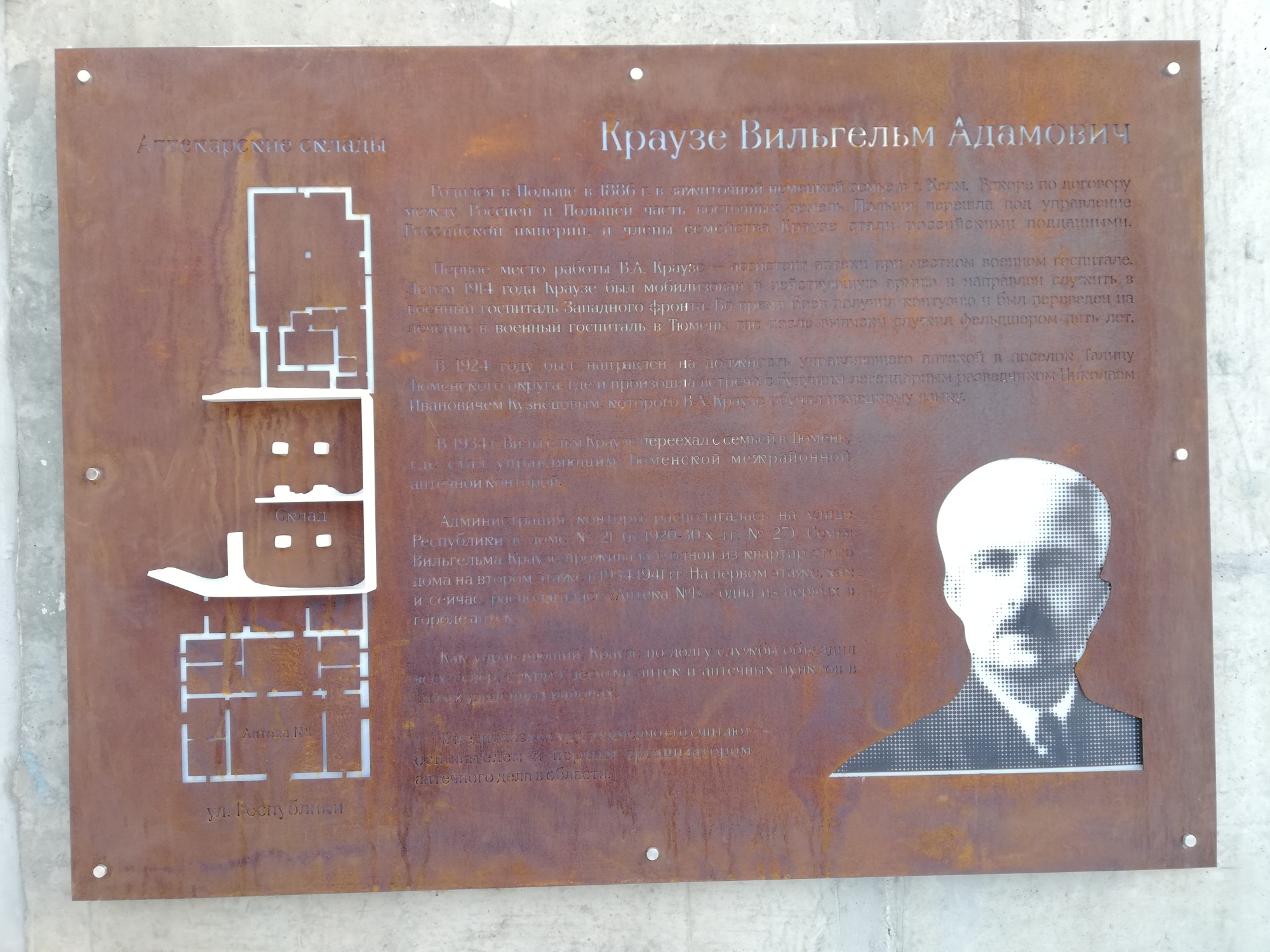 Обнаруженные артефакты, в частности, фрагмент колонны, который использовали в качестве торшера, архитекторы органично вписали в новое пространство. Отражена в новой локации и история нашего земляка Вильгельма Адамовича Краузе. В медицинских кругах именно его считают основателем и первым организатором аптечного дела в Тюменской области. Информация о нем размещена в амфитеатре.