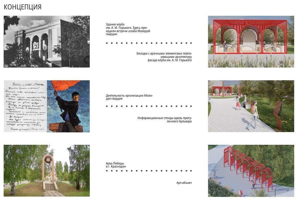 В ходе презентации участники обсудили перспективные направления развития сквера и возможные архитектурно-ландшафтные решения. Арт-объекты, которые создадут для этой общественной территории напомнят тюменцам о подвиге Молодой гвардии, который она совершила в Краснодоне в 1943 году.