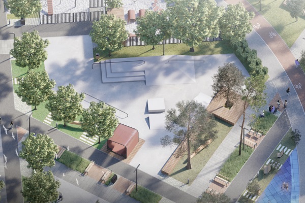 Согласно выбранной концепции, на Московском тракте появится свой мини-город с функциональными зонами. Родители найдут уютное место для отдыха и игр с детьми на детских площадках. Активные жители для себя откроют эффективную базу для физических упражнений на тренажерной и волейбольной площадках, любителей экстремальных видов спорта порадуют скейт-парк и площадка для воркаута.