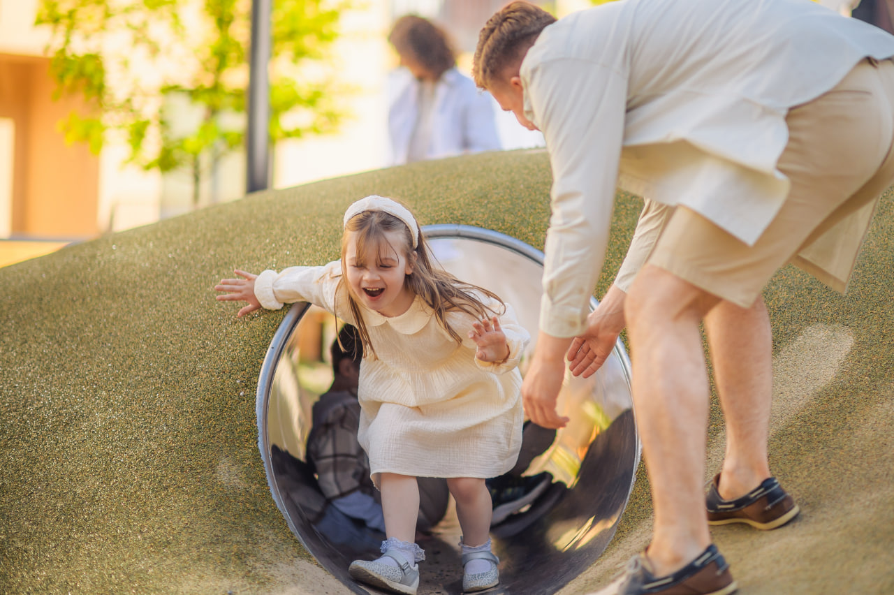 Первая очередь парка уже реализована — сейчас здесь есть детская площадка, прогулочные зоны, уютные беседки, скейтпарк, а в будущем появятся дополнительные игровые комплексы, амфитеатр, скалодром и другие локации для активного и спокойного досуга.