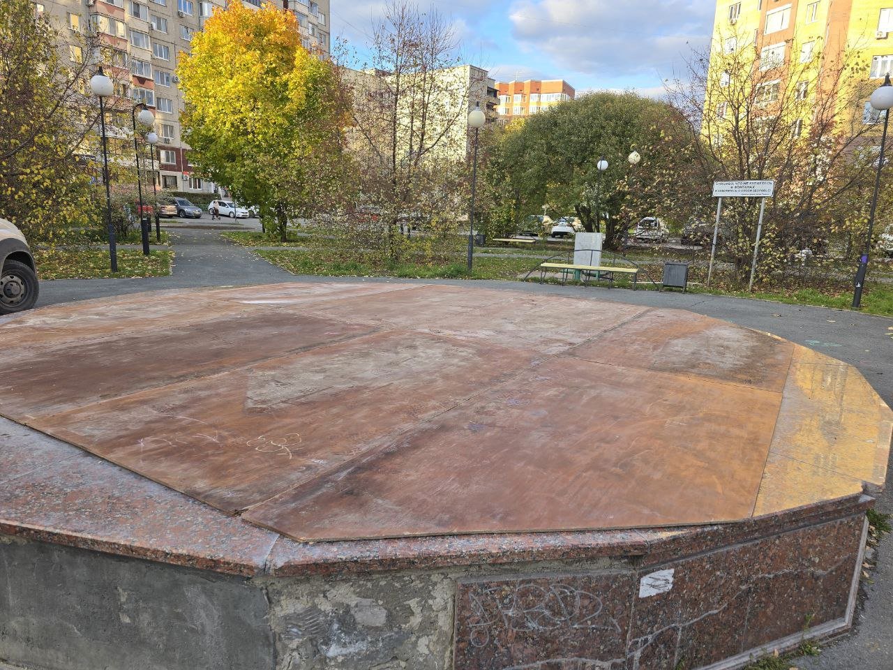 В Тюмени началась консервация фонтанов до следующего лета. Те, что с чашами, высушивают и закрывают специальными настилами.