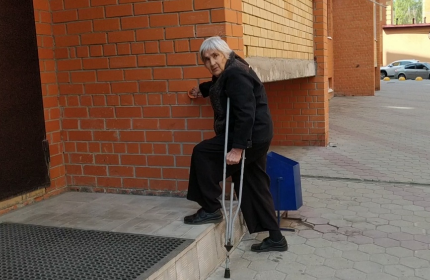 Тюменская пенсионерка Гульсина Аргынбаева, заходя в подъезд своего дома по улице Академический проезд, 9, каждый раз рискует упасть из-за отсутствия ступеней. Перед входной дверью только бетонная площадка, ее высота 27 см. Для пожилой женщины с больными ногами это серьезная преграда. Пенсионерка обратилась за помощью в редакцию «Вслух.ру». Мы воочию убедились, что ступень необходима. Тут и здоровый человек может споткнуться, так как нужно выше поднимать ногу. Эта высотка из красного кирпича находится в районе Дударева по Московскому тракту.