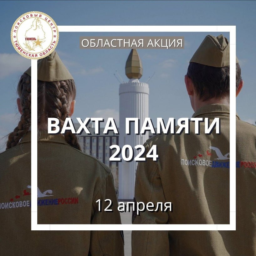 12 апреля стартует областная патриотическая акция «Вахта памяти-2024». Торжественное открытие пройдет в 14:00 на площади Памяти. Участниками мероприятия станут руководители и бойцы поисковых отрядов Тюменской области, представители общественных организаций и органов самоуправления.