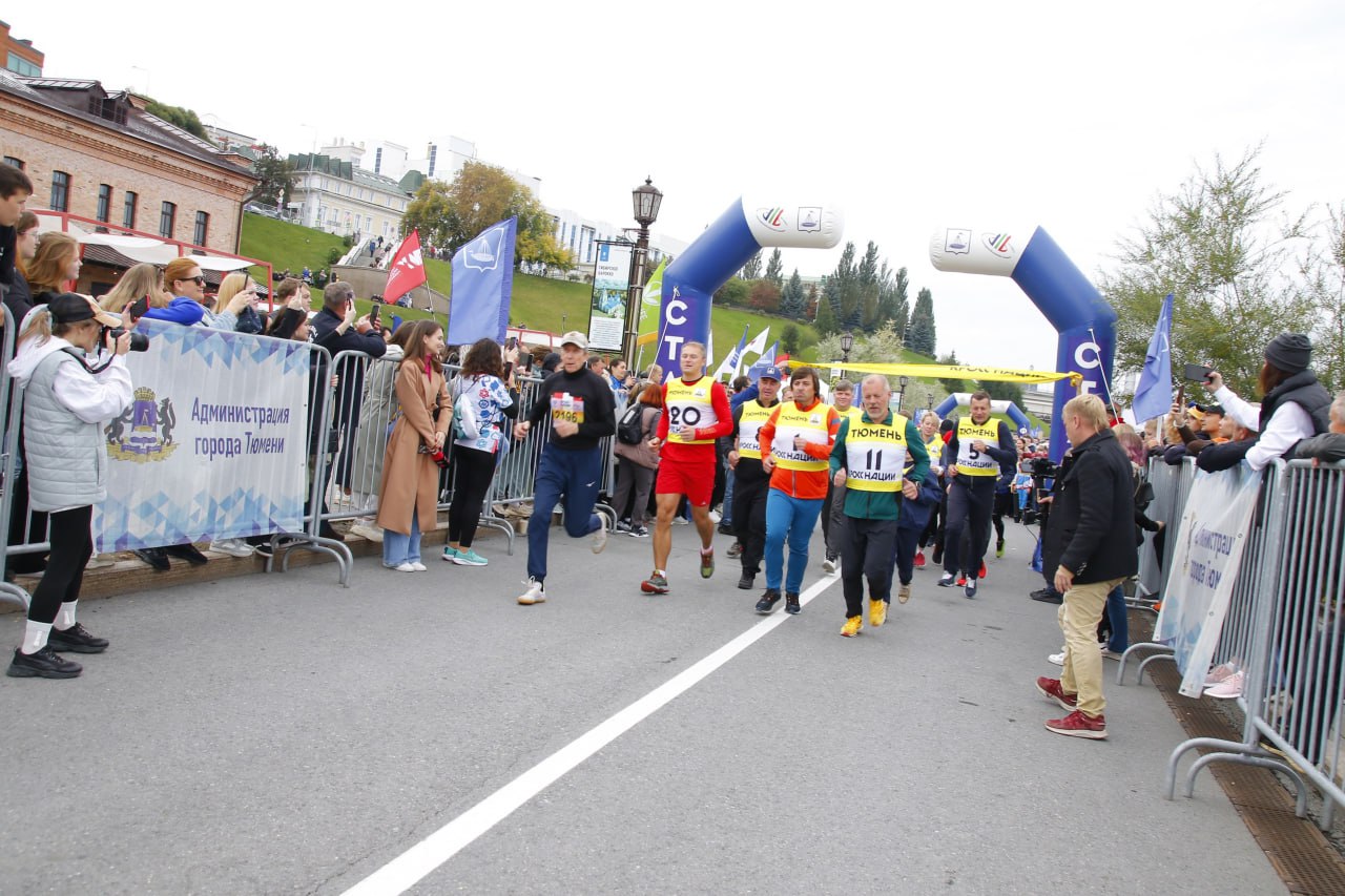 Участие в забеге приняли глава Тюмени Максим Афанасьев, директор департамента физической культуры, спорта и дополнительного образования Тюменской области Евгений Хромин, директор департамента по спорту и молодежной политике администрации Тюмени Сергей Борисевич и заместитель губернатора Тюменской области Владимир Чейметов, он, кстати, возглавляет региональную федерацию легкой атлетики.