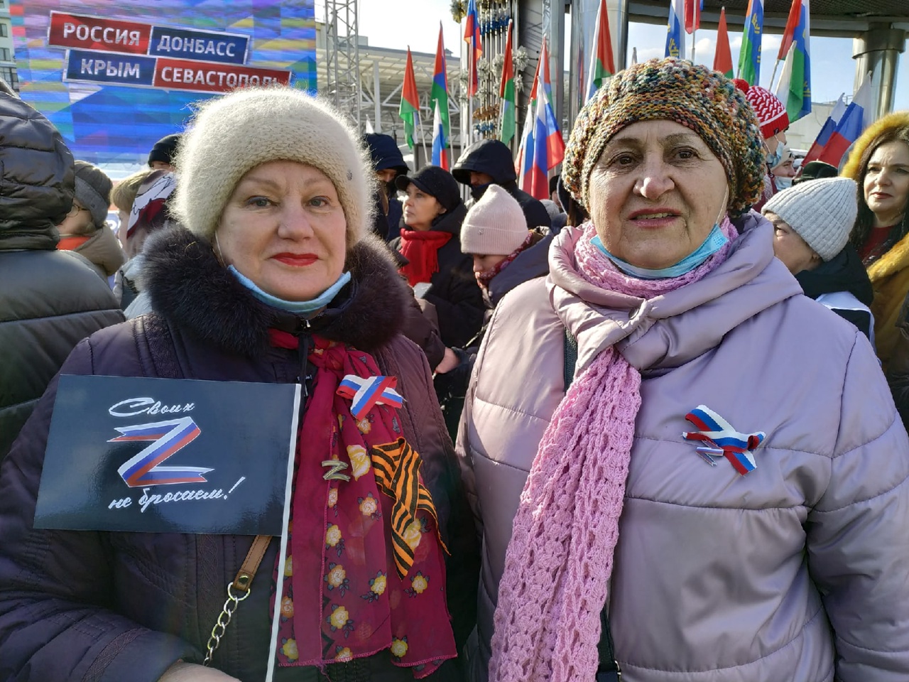 «Сегодня значимый для страны день! — уверена Раиса Ивановна. — В Крыму наши корни. За него столько крови пролито, начиная с Крымской войны. Я родилась в Амвросиевке на Донбассе. Закончила Донецкий техникум советской торговли, потом уехала на Север. Плакала в 2014 году, когда все это началось. Донбасс должен быть свободным от нацизма! Без наемников и бандеровцев!».