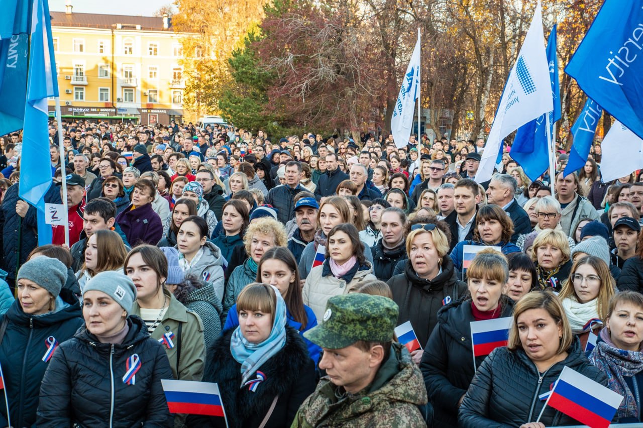 Сегодня тюменцы вышли на акцию «Мы вместе» в поддержку Российской армии, президента России, жителей Донбасса. Участие в ней принял и губернатор Александр Моор.