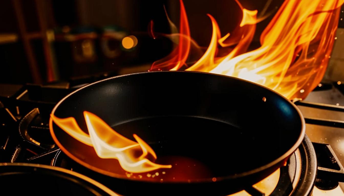 Тушение раскаленного на сковороде масла очень опасно, необходимо выполнить следующие действия.