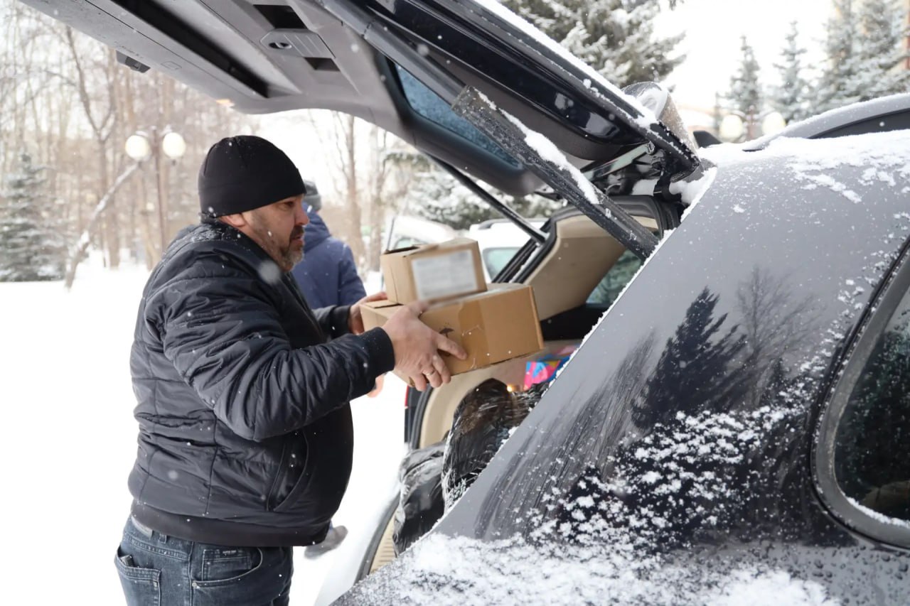 Активисты молодежного центра «Поколение» снабдили автомобиль гуманитарной помощью — продовольственными посылками и маскировочными сетями.