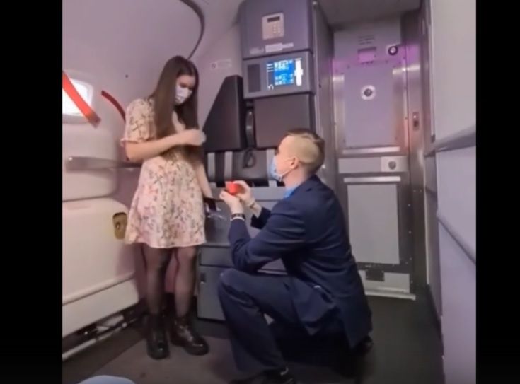 Бортпроводник сделал предложение своей девушке в небе. Трогательный момент произошел на глазах у пассажиров рейса «Тюмень-Москва» авиакомпании «Победа». Александр Писаренко не так давно познакомился с Катей Гартвих, но понял, что настала пора действовать. Он пригласил возлюбленную выйти к нему и на весь самолет рассказал о своих чувствах.