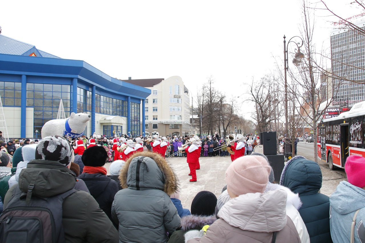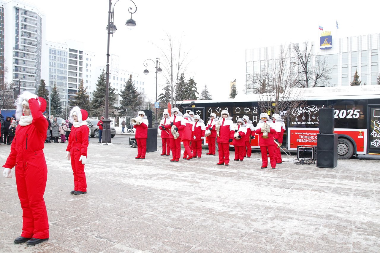 Сегодня по Тюмени проехал ДедМоробус. Он стартовал с пешеходной улицы Дзержинского, остановившись на Цветном бульваре (в районе цирка), площади 400-летия Тюмени и сквере Льва Ровнина. Музыканты Тюменского духового оркестра в красных праздничных костюмах исполнили знакомые мелодии, такие как «Звенит январская вьюга», «Песенка о медведях» и «Три белых коня», а также другие популярные композиции. Об этом сообщает пресс-служба администрации Тюмени.