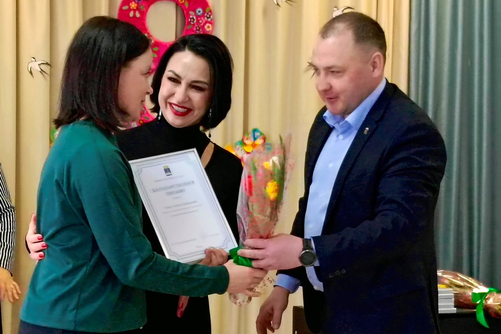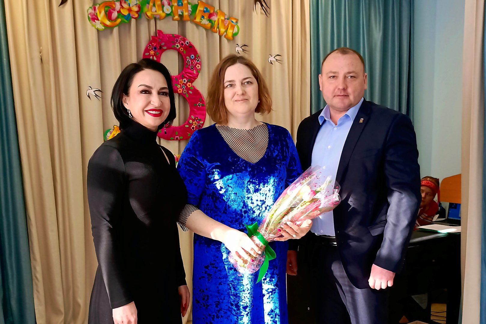 В канун 8 Марта депутаты Тюменской городской думы поздравляют представительниц сферы образования. Депутат Наталья Проскурякова совместно с представителем всероссийской общественной организации «Офицеры России» Владимиром Недокушевым поздравили коллектив детского сада №1.