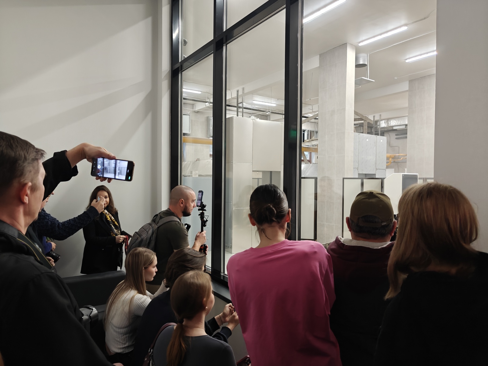 И тут обнаружилась еще одна комната, очень важная для родственников — здесь за отдельную плату можно через толстое стекло увидеть, как гроб с телом погружается в недра печи. Бросить последний взгляд. Услуга стоит около 5000 рублей. Дело не в стремлении нажиться. Дело в том, что для демонстрации приходится останавливать работу остальных двух печей (помните, они все в одном зале), а значит, задерживать работу крематория в принципе.
