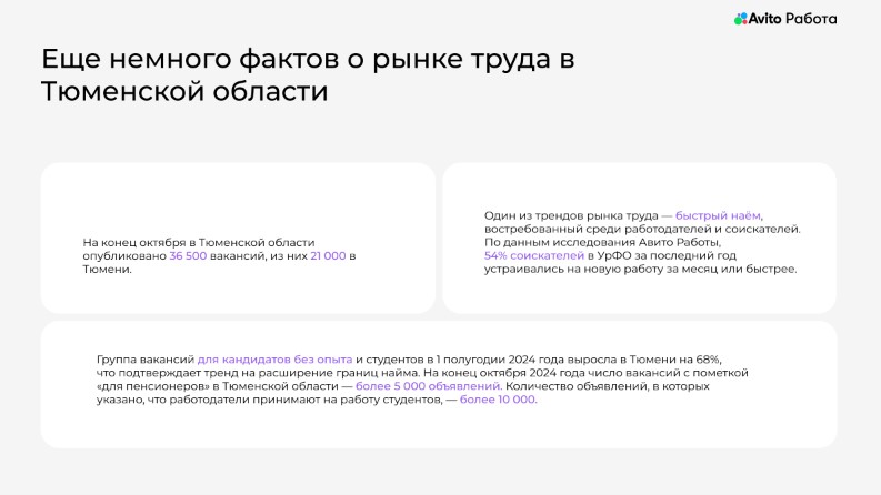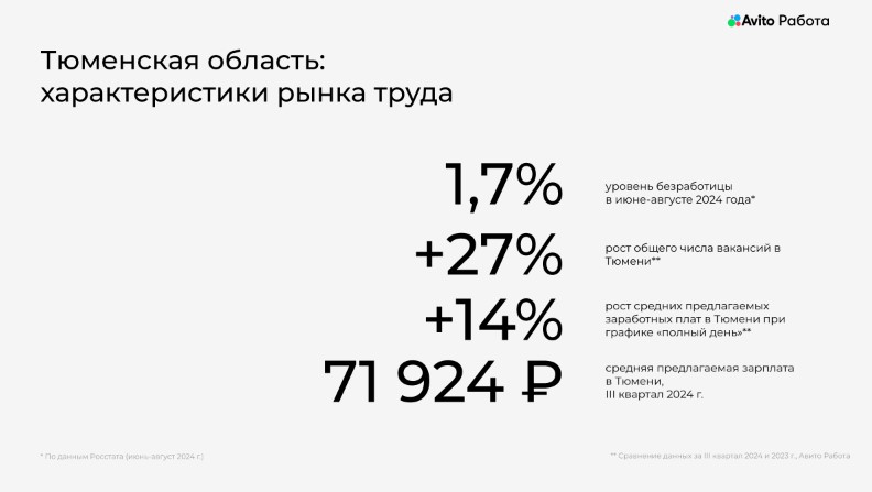 На конец октября на платформе опубликовано 36,5 тысячи вакансий в регионе, в том числе 21 тысяча — в Тюмени.