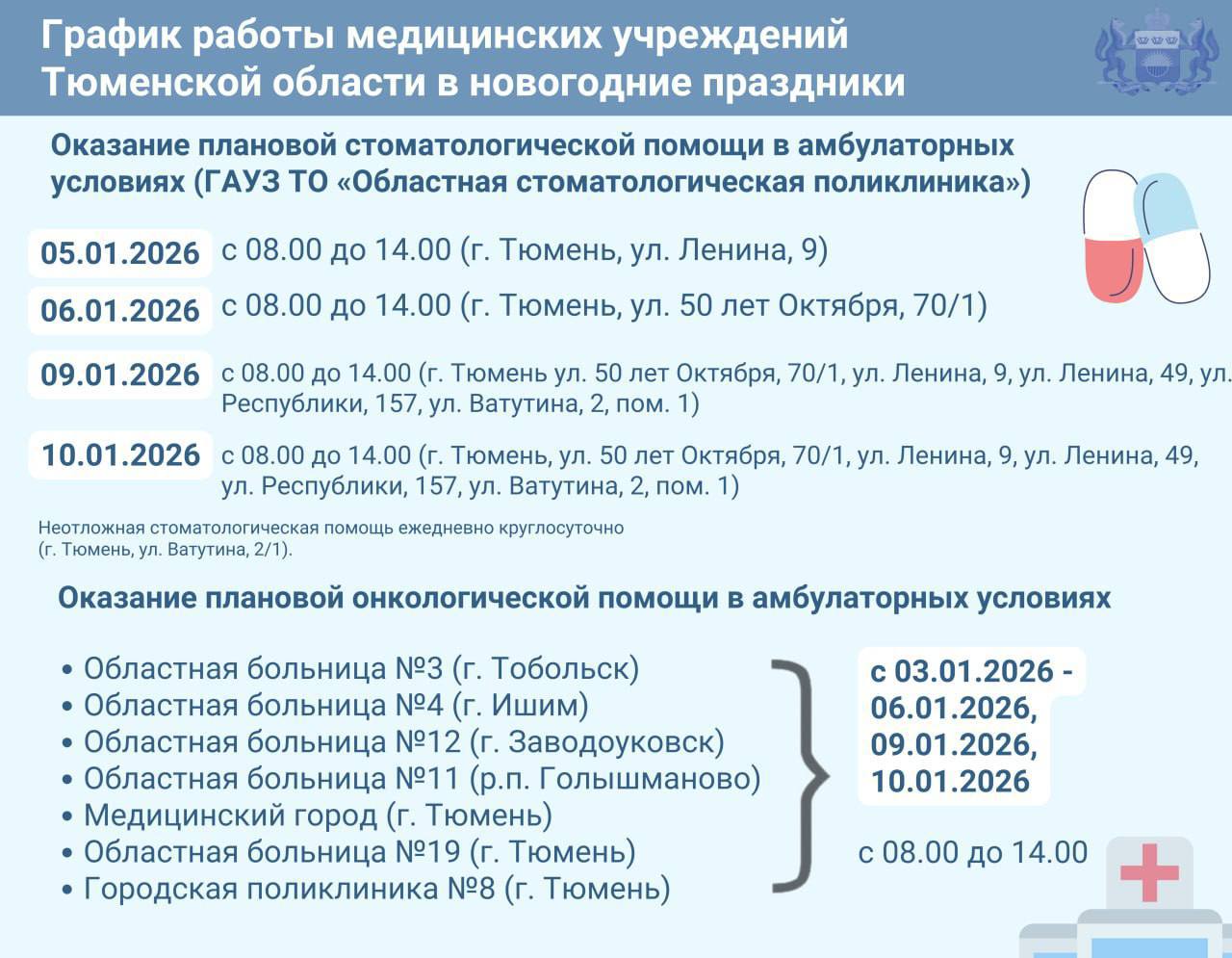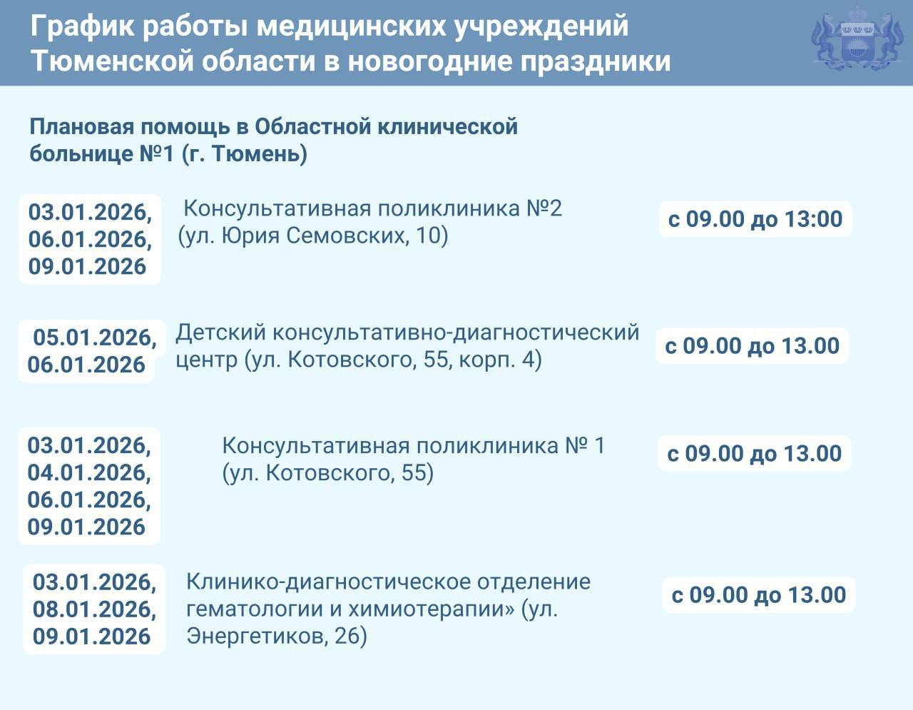 Медицинские учреждения Тюменской области продолжат прием пациентов в новогодние праздники.