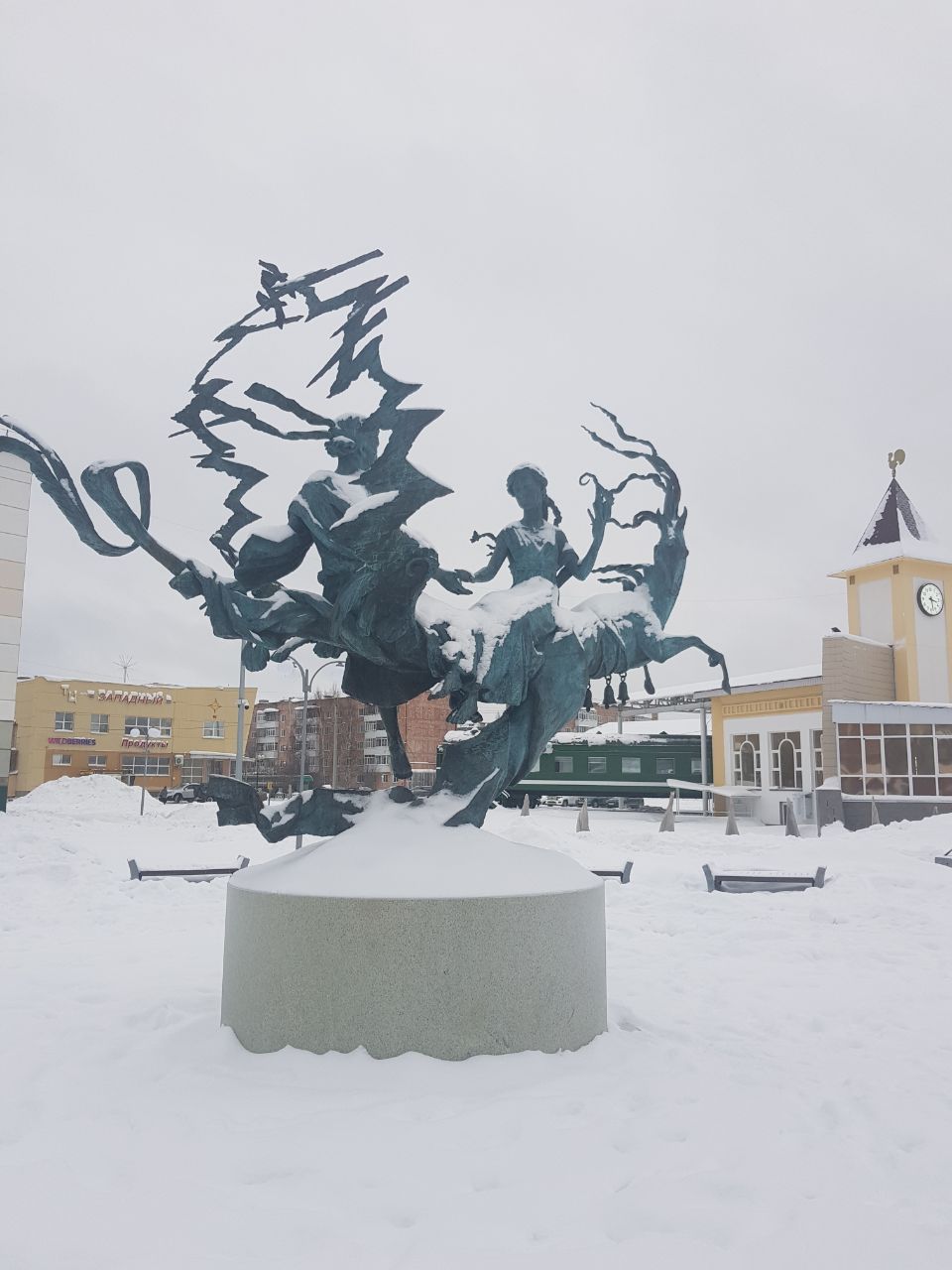 Выбор пал на Урай, потому что в других ближайших более и менее примечательных городах мы уже были. А тут северный городок, но при этом самый юг ХМАО. Правда, добираться до Урая из Тюмени тот еще квест. Прямой дороги нет, в холодное время года открывают зимник, но нынче (видимо, из-за теплой зимы) его не проложили. В итоге путь строится так: сначала на машине (либо на автобусе) до Верхней Тавды (129 км), оттуда на поезде или электричке до Устья-Аха (185 км), а там на автобусе или маршрутке уже до Урая (125 км). То есть набегает 439 км, хотя расстояние по прямой — 333 км. Нет, можно, конечно, и на самолете, но на нужную нам дату стоимость билета на человека стартовала от 10 тысяч рублей в одну сторону. Поэтому воздушный путь мы сразу отбросили.