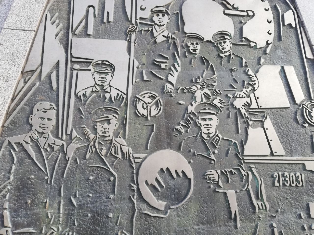Барельефы, которыми украшены стела и пилоны входной группы, выполнены на основе подлинных фотоснимков, сделанных в годы войны на тюменских предприятиях, и публикаций из городских газет.