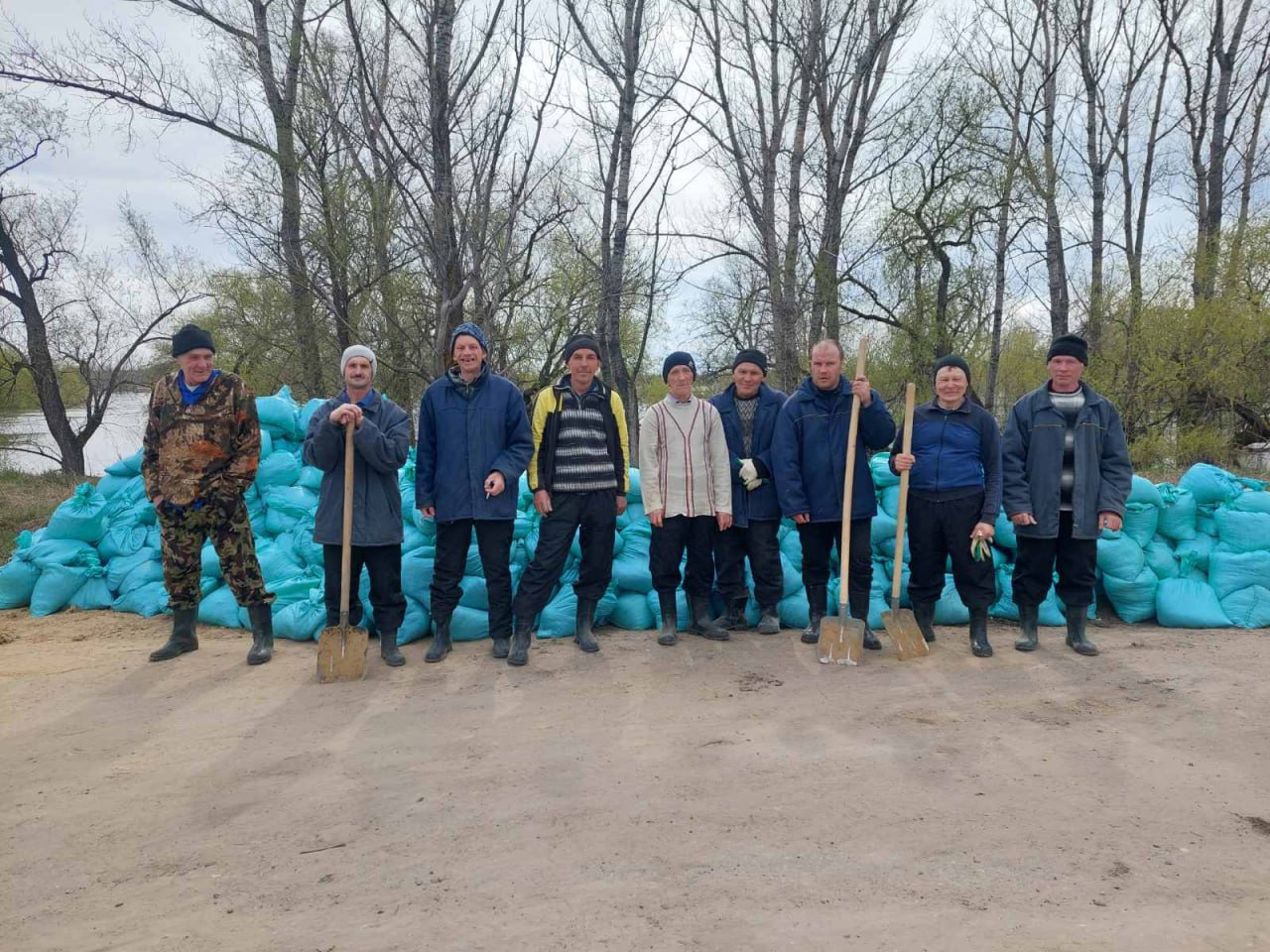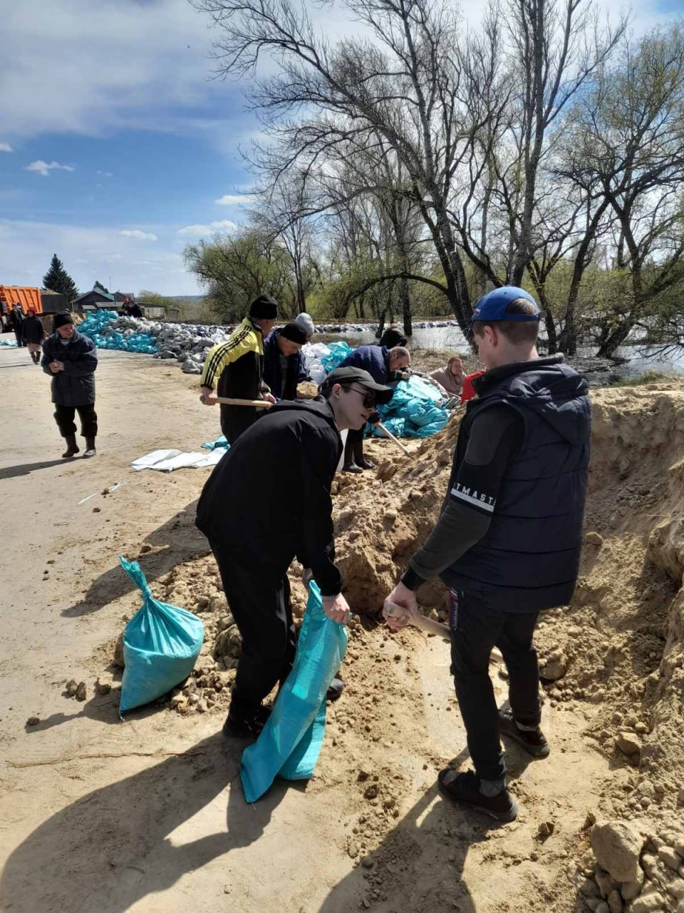 Добровольцы наполняют мешки песком, помогают устранять протечки.