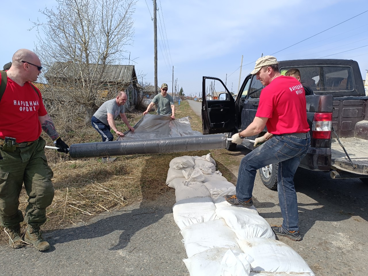 Решение строить дамбу вдоль дороги было приятно в последний момент, перед укладкой мешков вдоль центральной улицы Васильева. Дома, ближние к пойме, защитить было уже невозможно. На этой же затопляемой стороне оказался и сельский клуб. Сказали делать дамбу высотой до 60 см. Никто из нашего волонтерского отряда дамбы раньше не строил. У прибывших на помощь сотрудников МЧС из Ханты-Мансийского округа опыта тоже было немного