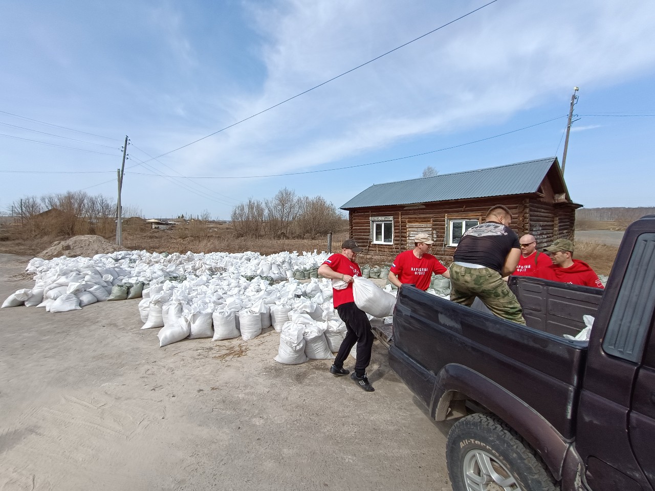 Во время перерыва подъехала полевая кухня из новолоктинской школы. Накормили обедом, привезли много питьевой воды. За четыре часа местные жители заполнили песком четыре кучи. Ждут еще четыре грузовика с песком для завершения строительства дамбы. Тревожных новостей из Макарова пока не поступало, значит, деревня держится.