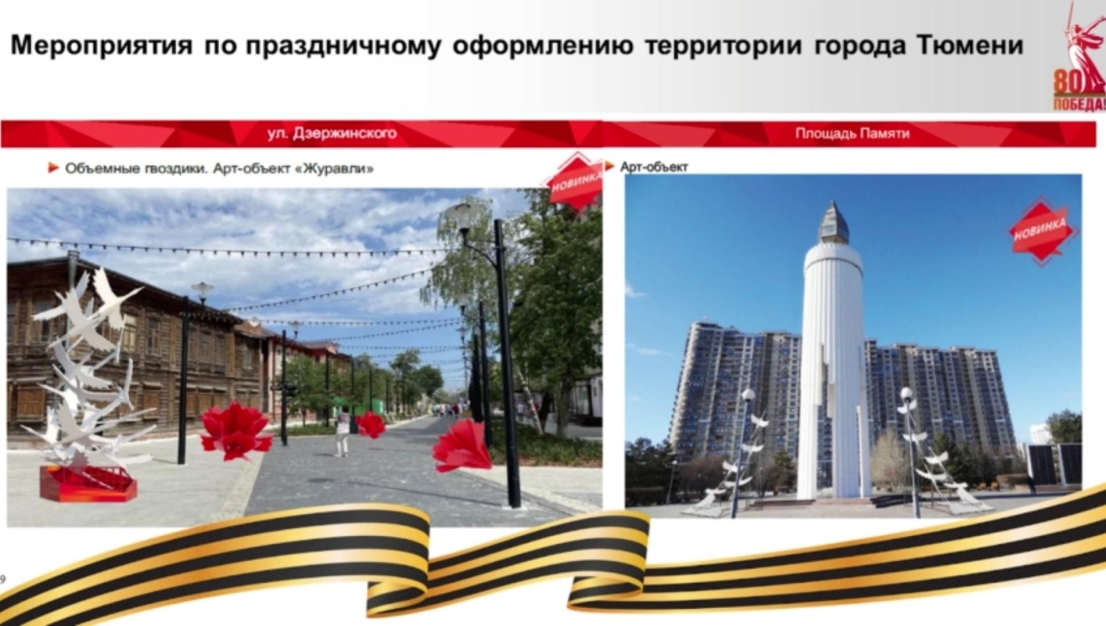 Кроме того, в Тюмени появятся объемные гвоздики и арт-объект «Журавли».